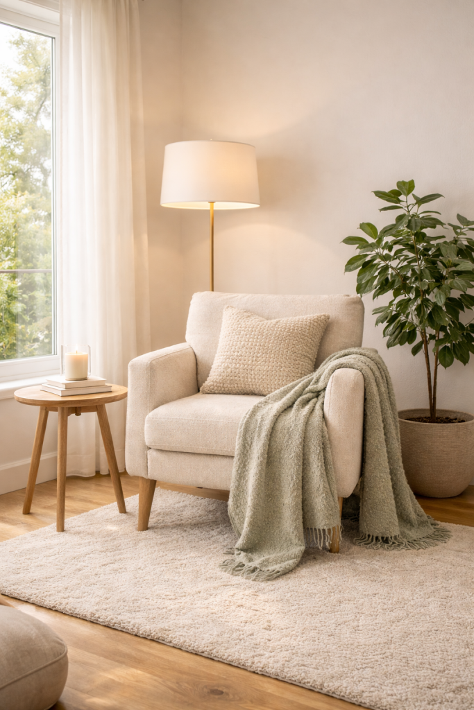 Every home deserves a comfortable zone. Set up a cozy reading area by putting a comfy chair in it, soft blankets, and cozy lighting. A small space can be your preferred place to relax.