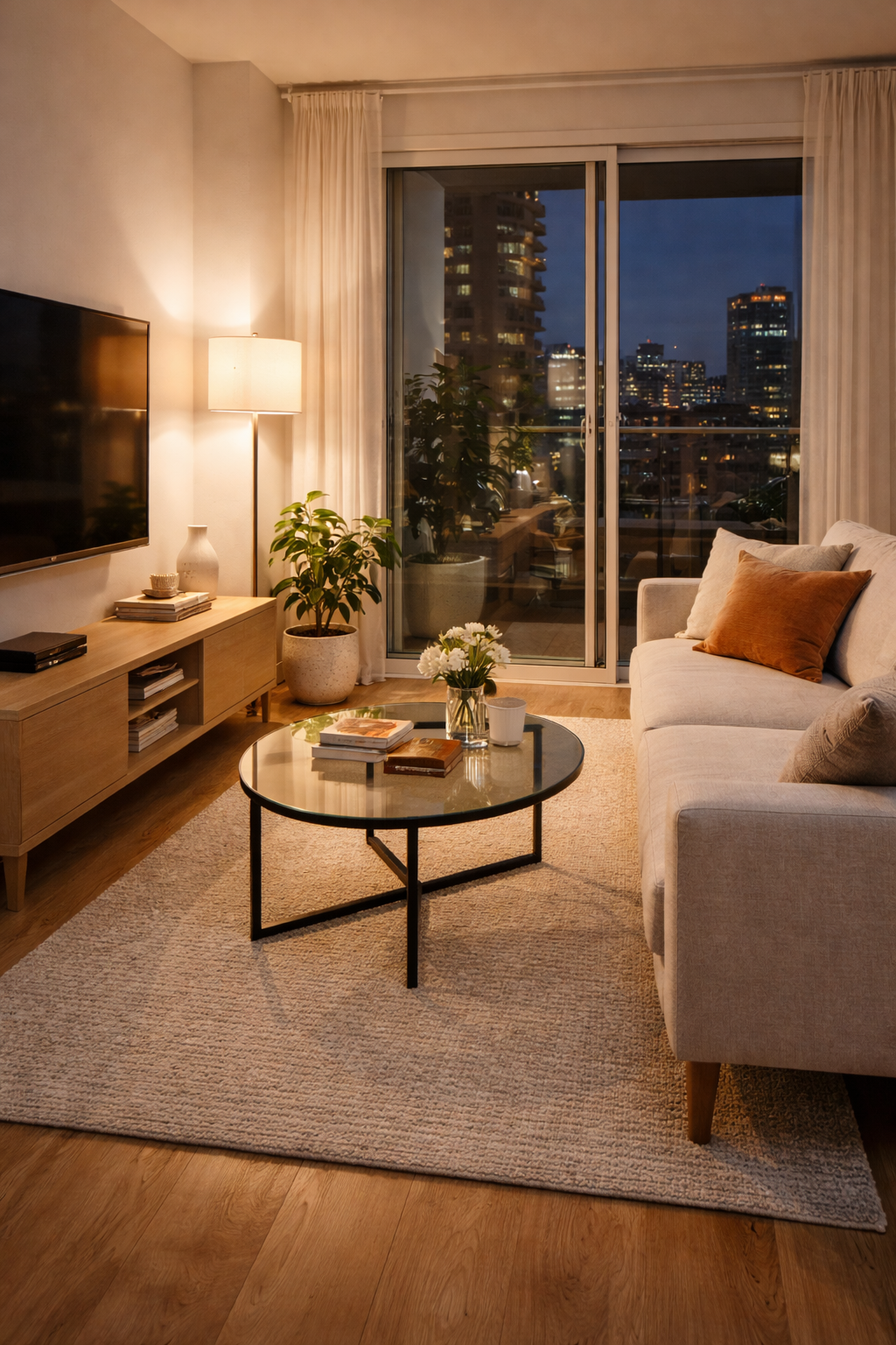 Living spaces in apartments usually require clever design decisions to make the most of space. Pick compact furniture such as small sofas or glasses coffee tables that keep the space looking spacious. A contemporary floor lamp and simple media consoles can assist in organizing your space without clutter. Color palettes of neutrals and tiny accent colors like navy or burnt orange give an individual touch without overpowering the design. Large windows or doors for balconies let in light and make the living space appear bright and elegant.