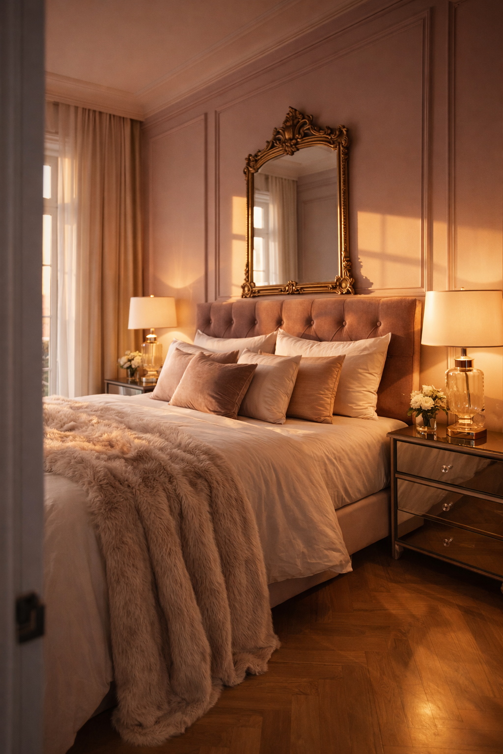 4. Soft Blush Glam Bedroom