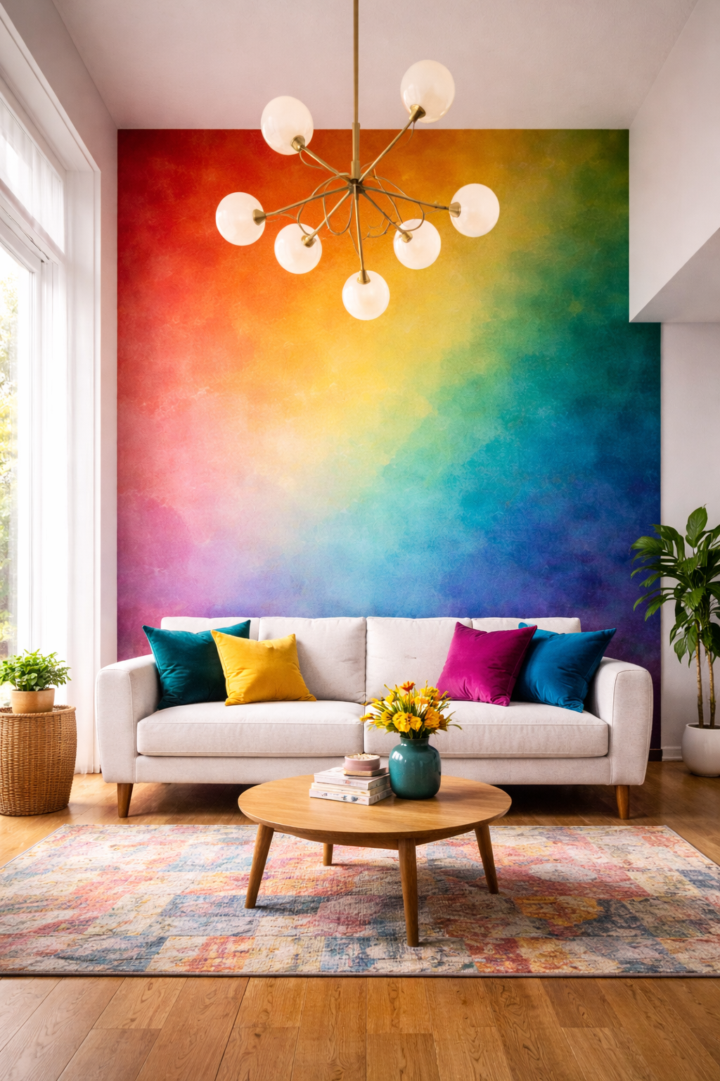 Ceiling-to-Floor Vertical Rainbow Wall Feature