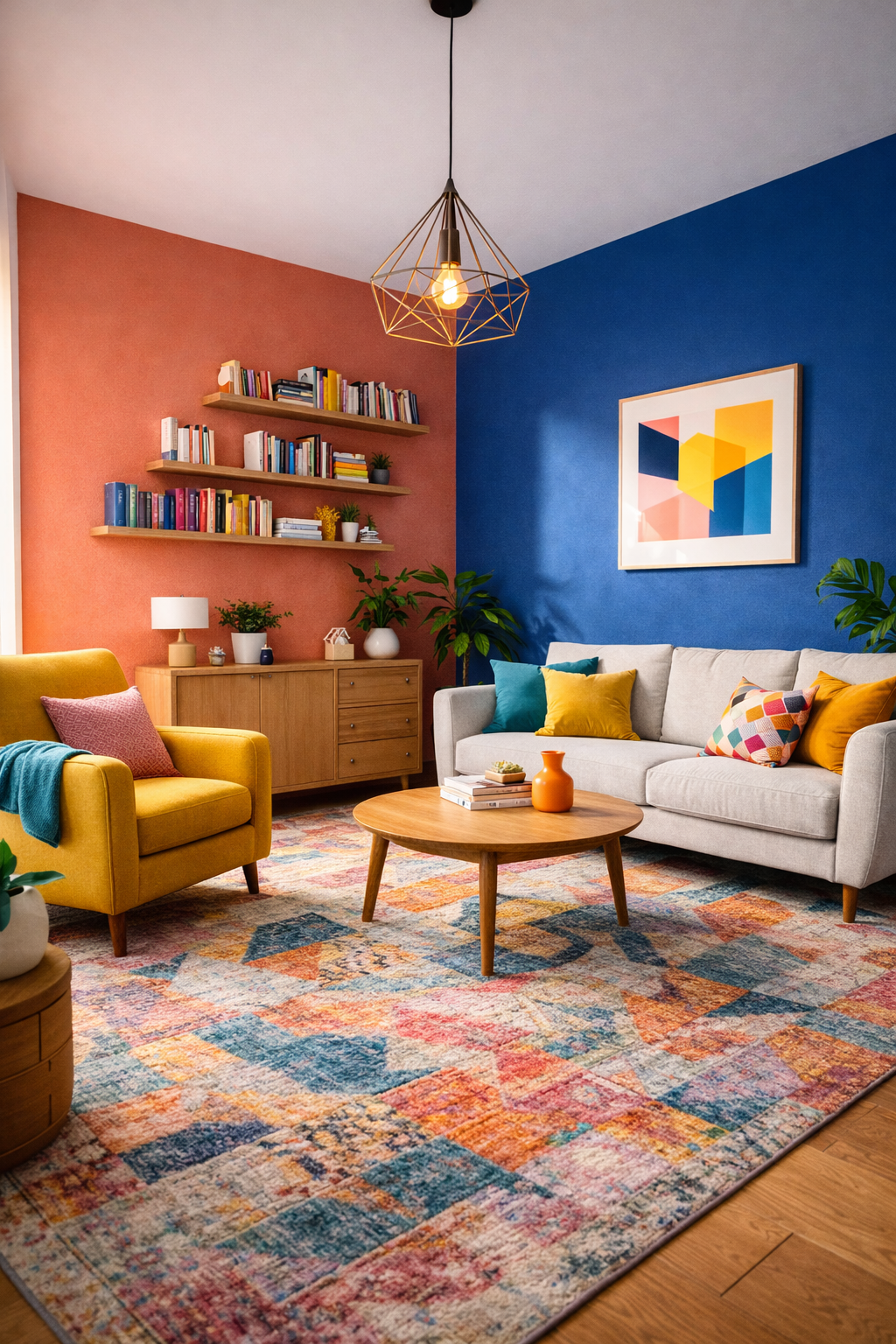 Dramatic Corner Shot with Color-Blocked Walls